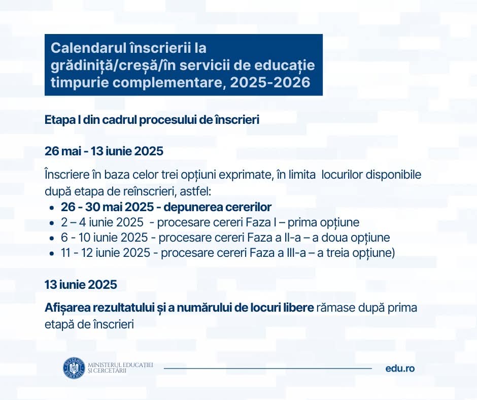 Extras din Calendarul înscrierii copiilor antepreșcolari și preșcolari în anul școlar 2025-2026